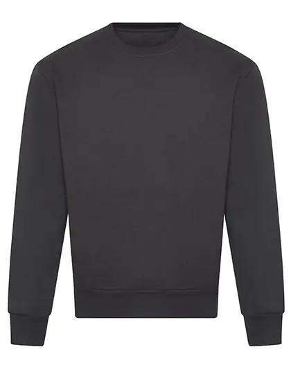 Ringgesponnene Baumwolle / recycelter Polyester | 100 % Baumwoll-Obermaterial | Oversized-Passform | Schweres Material | Rundhalsausschnitt | Gerippter Kragen, Bündchen und Saum | Eingesetzte Ärmel | Gebürstetes Innenvlies | Abreißetikett